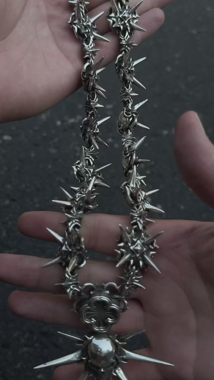 cant decide if ur feelin deadly or holy? dw we got u with our 2 pendant chain with swappable skull and cross pendants. secured within our unique magnetic clasp. available in full stainless steel. the choice is urs.