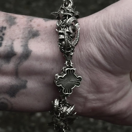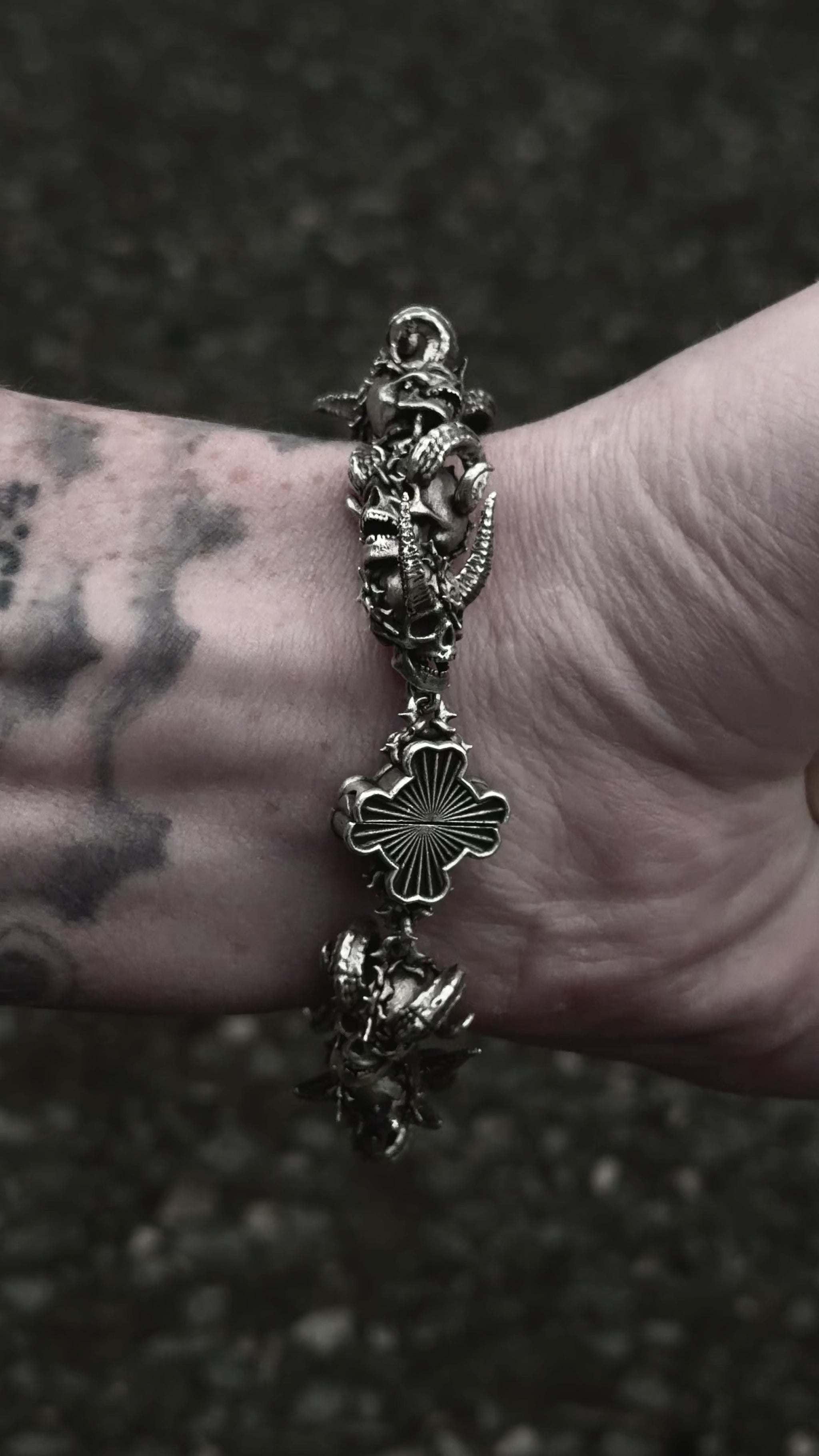 Even though it didnt make the last drop, yall wanted it so bad i had to bring it back. This double linked horned skull is a crazy piece to rock everyday. Comes in stainless steel. Pairs nicely with the Split Skull Ring
